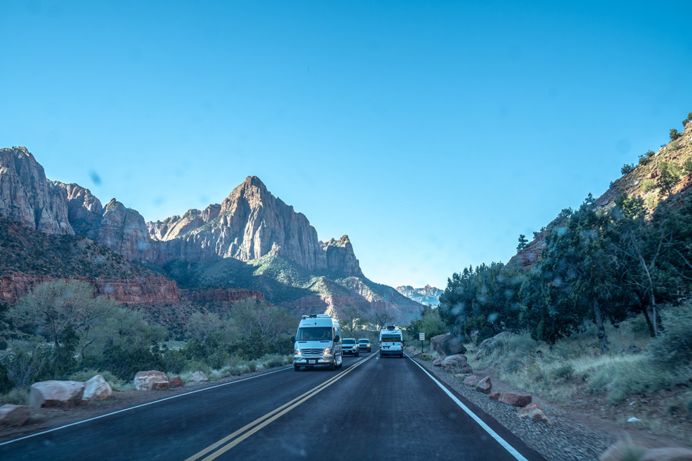 Utahissa sijaitsevaan Zion National Park -kansallispuistoon saapuminen itsessään oli jo upea kokemus. Maisemat jo auton ikkunasta katseltaessa olivat uskomattomat. Suuntasimme Zioniin naapuripuistosta Bryce Canyonista, josta olimme lähteneet aamutuimaan ajamaan. Haimme matkalla aamupalaa eräästä tienvarrella löytyneestä kahvilasta, kun ne viimein avautuivat. Utahin maanteitä ajellessa silmä todellakin lepää, kun kaikkialla tuntuu olevan niin kaunista.
